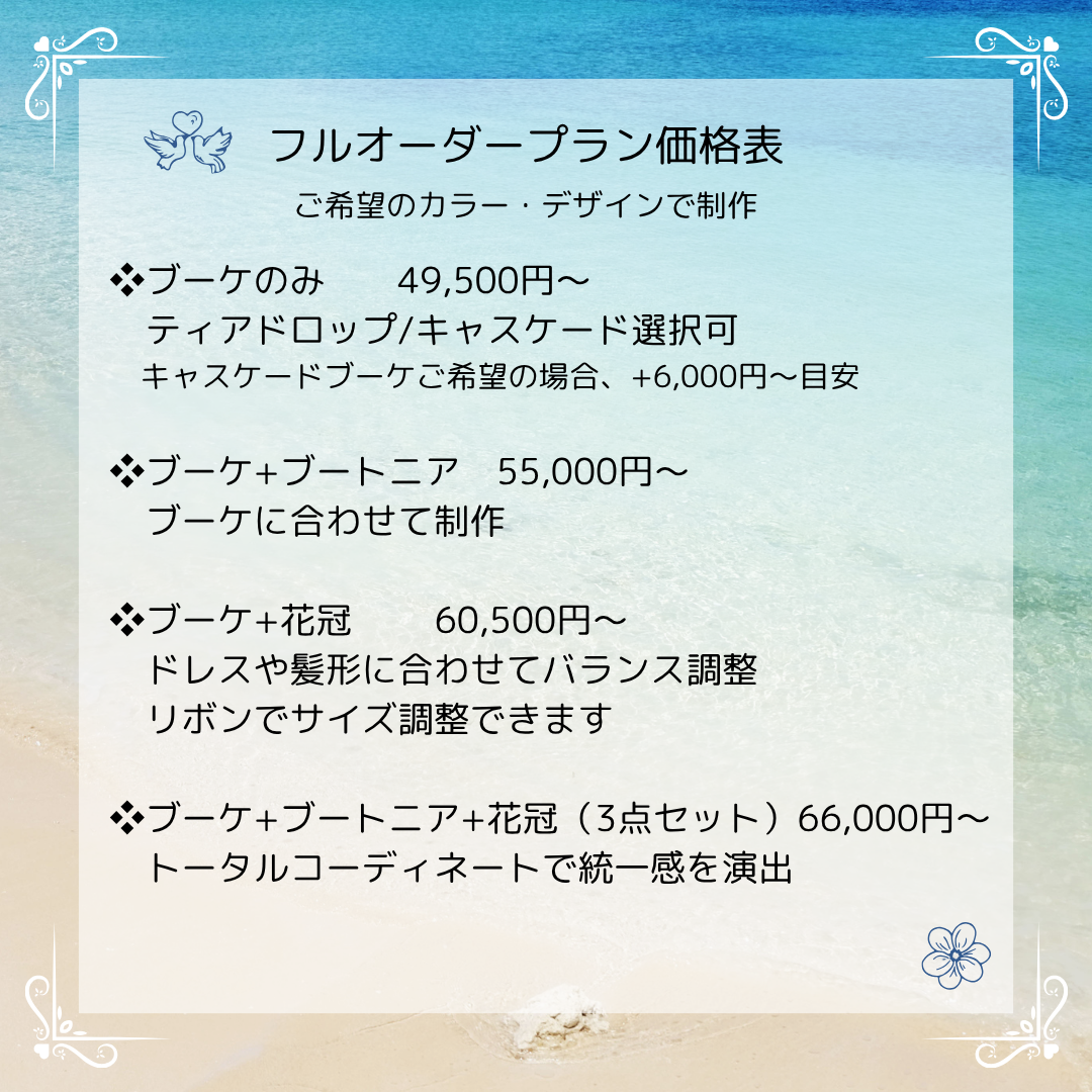 ・キャスケードブーケをご希望の場合、プラス¥6,000〜目安