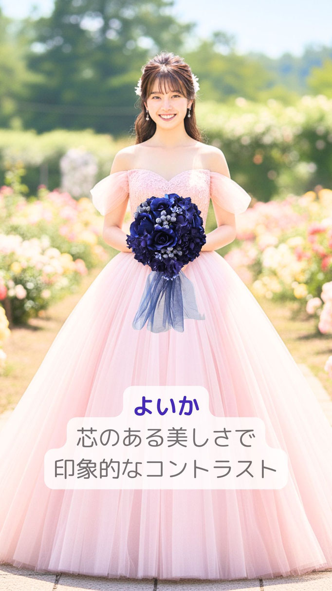 💙 よいか(ネイビー) | 優しさの中に芯のある美しさを感じさせる印象派なコントラスト。大人婚にもぴったり。 |