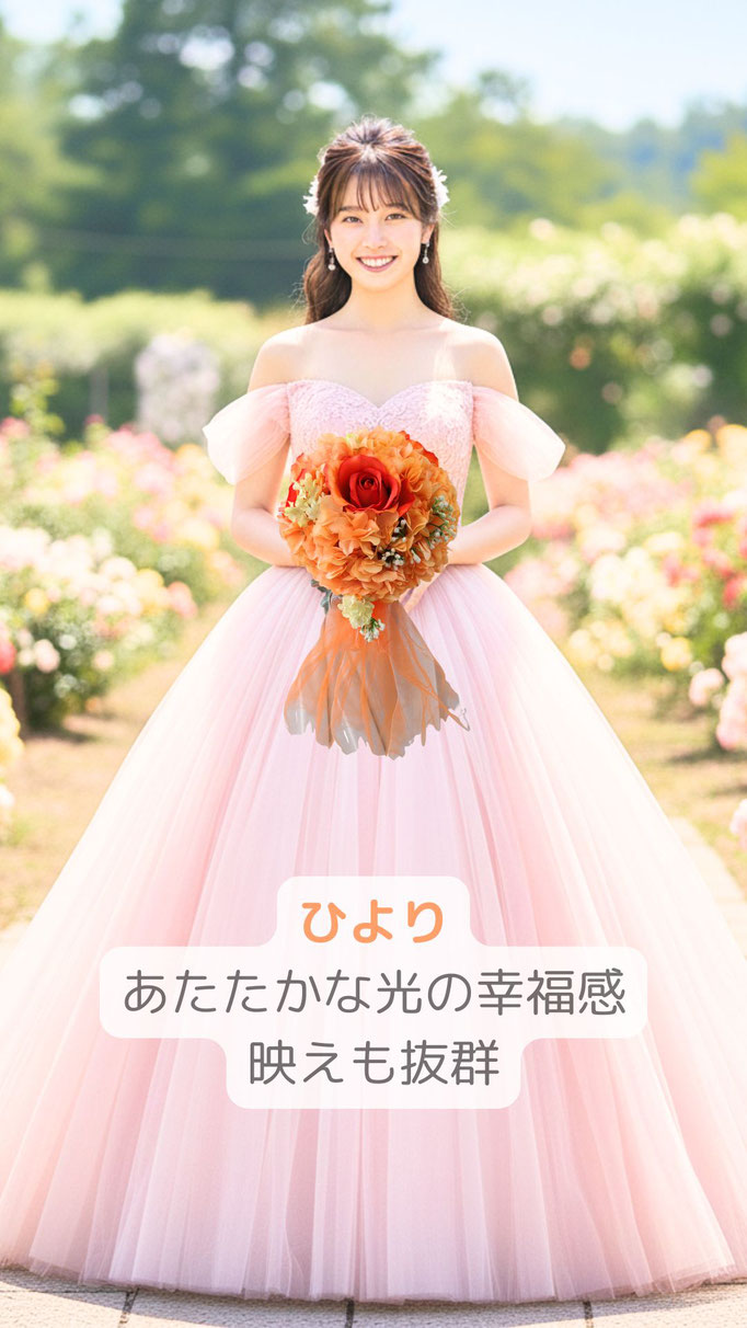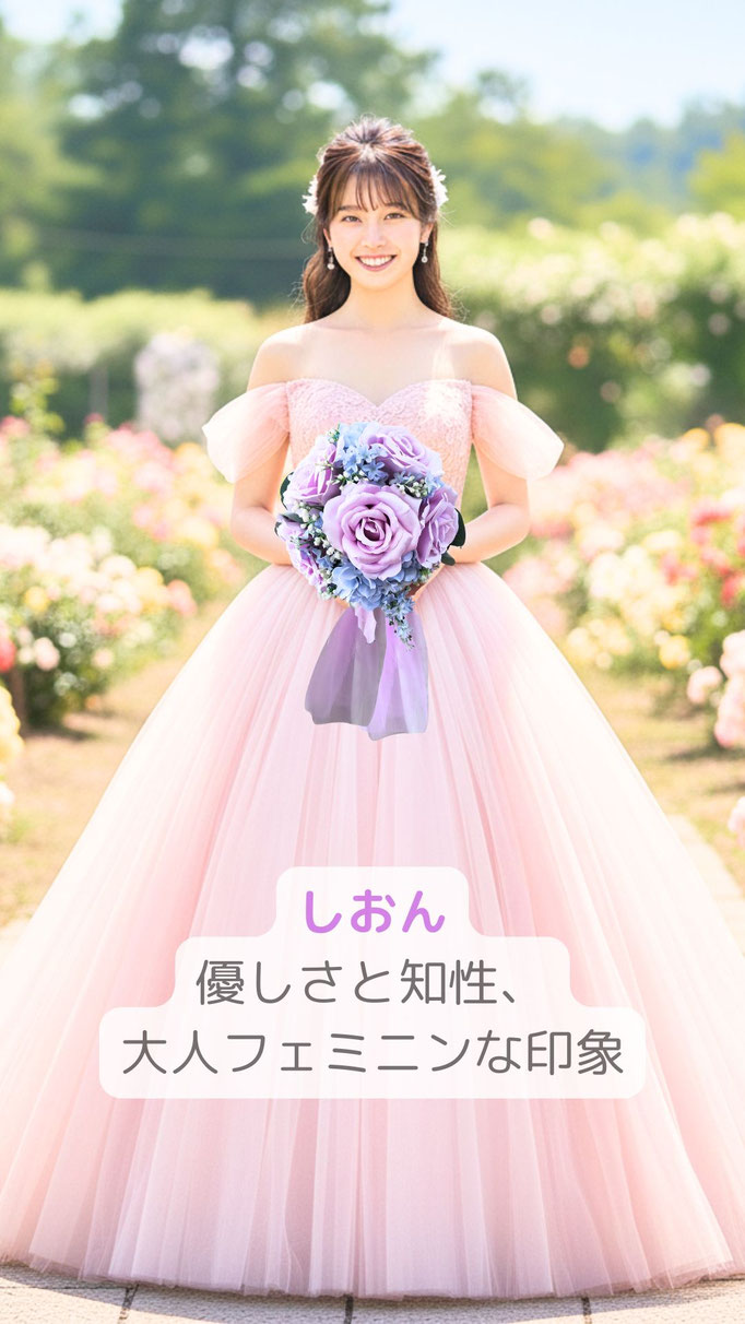 💗 しらべ(ピンク) | 王道の可憐さを極めた“永遠の花嫁カラー”。前撮りや挙式どちらにも万能です。 |