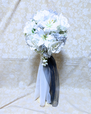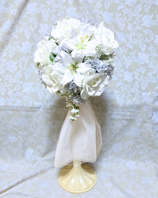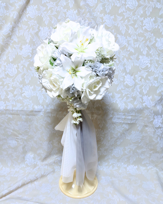 清楚と洗練を極める。ホワイト×シルバーのマーメイドテイルブーケ™ フルオーダー
